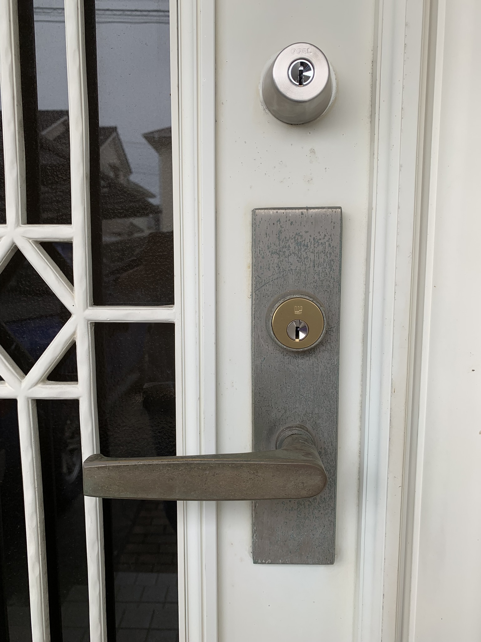 川越市のお客様より、動かなくなった補助鍵と不調な主鍵のご相談をいただき、GOAL社のGGケース錠を取り寄せて交換。今回は修理対応が難しく、初の交換事例となりました。防犯性を考慮し、ディンプルキーにも併せて交換しました。