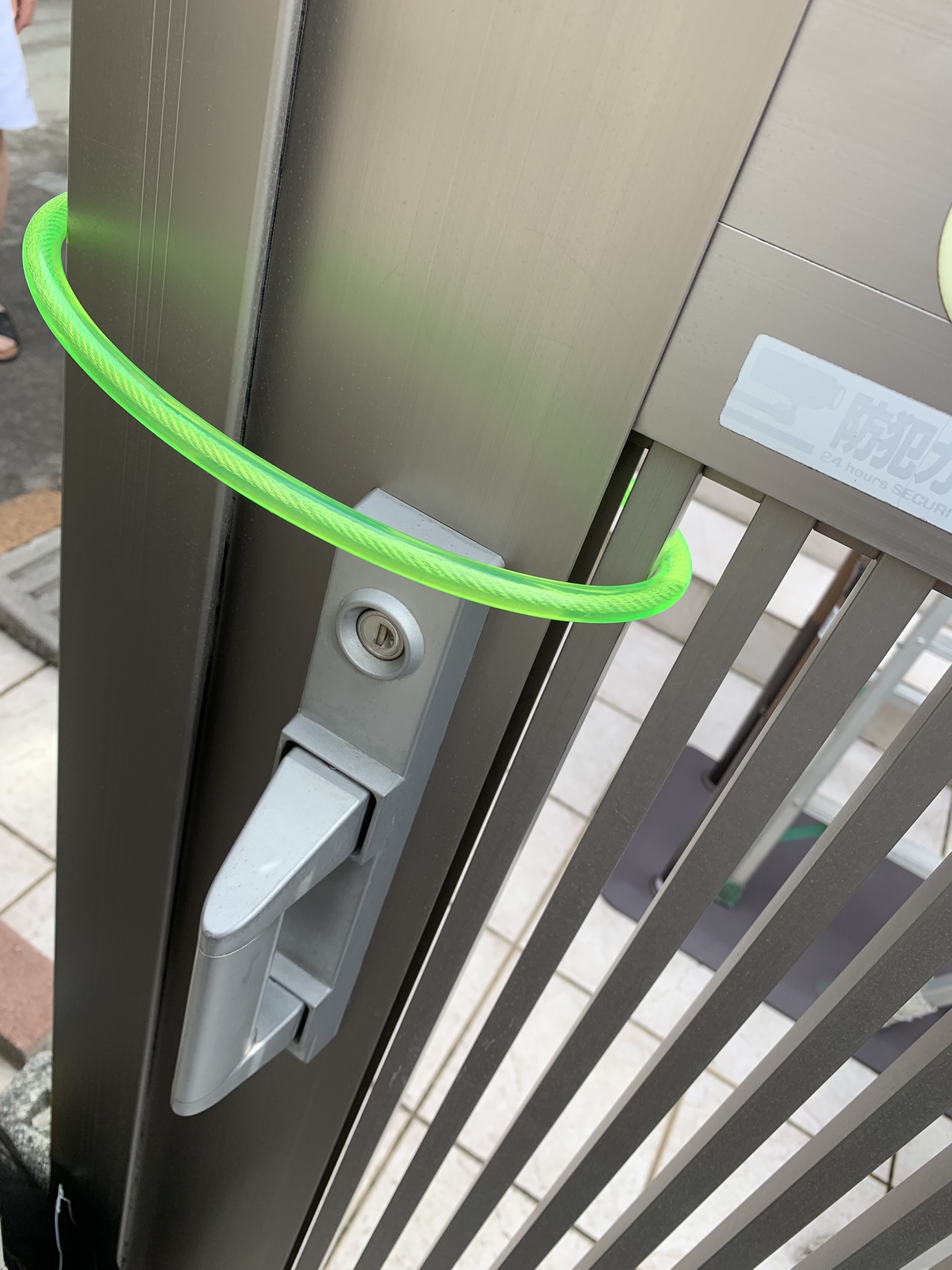 いつもご覧いただきありがとうございます。今回は埼玉県朝霞市のお客様で自宅の門扉の鍵とガレージでジャバラ型の門の鍵をなくしてしまい、すぐに車を出したい用事があるのですぐに鍵開けをしてもらいたいとの依頼内容でした。約20分で到着後、拝見しますと門扉は自転車などを繋ぐチェーンタイプの鍵でこちらは壊してもいいとの事でしたので、切断して鍵開けしました。ガレージの方は門自体に鍵穴が備わっているタイプで鍵穴をのぞくとディンプルシリンダーで、防犯性が高い物でした。ディンプルキーの場合小型のものはピッキングで開く場合もありますが、確率的にはそれほど高くありません。壊して開ける可能性もあることをお伝えし、ピッキングにて対応し、無事開けることができました。こういった鍵を無くした場合、外出先というよりは家の中か庭等に落ちている場合が多いですので、鍵が出てくればまた使えるようになります。